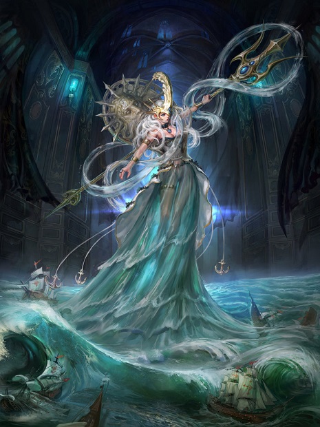 goddess of the violent sea currents and waves during storms