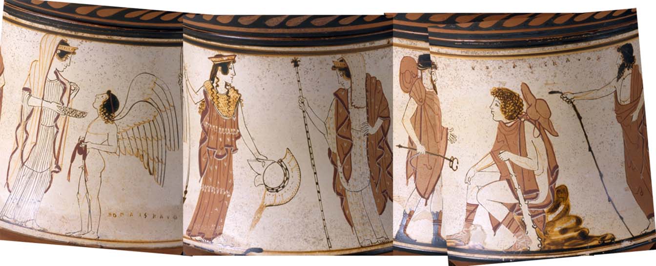 Helping herself through that device, she succeeded in starting a dispute between Hera, Athena, and Aphrodite. So Zeus, who knew the otherwise anonymous shepherd Paris, appointed Hermes to lead the three goddesses to Mount Ida in order to be judged by the same shepherd, and in that way put an end to the quarrel.