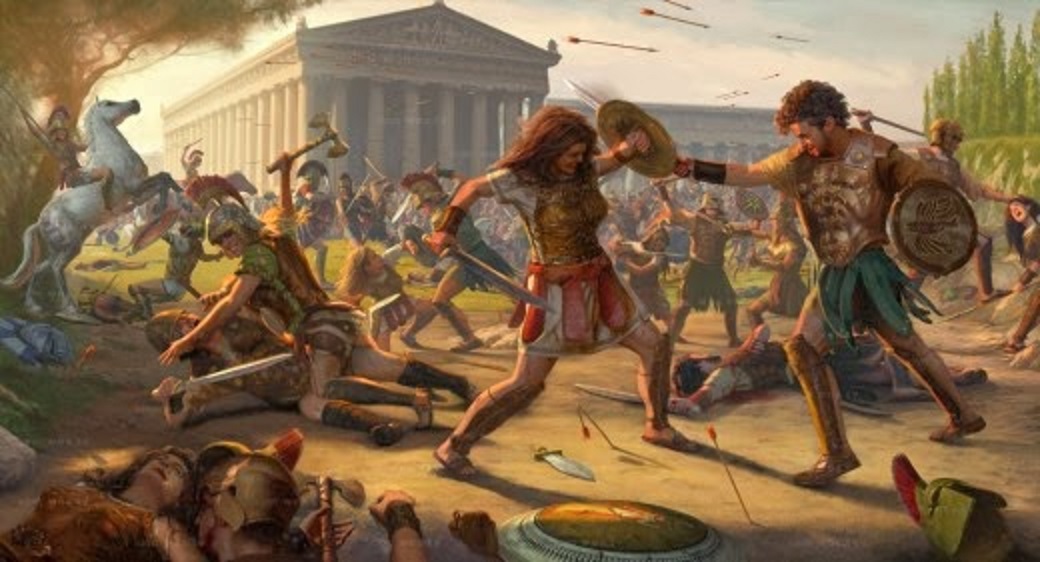 The myth says that they lived in the city of Themiscyra, off the river Thermodon in Asia Minor, and they were a race of mighty warrior women. Their society was governed strictly and exclusively by women, providing a fascinating contrast to the male-dominated society of the ancient times. Men were not allowed to become members in their society, unless it was for the specific purpose of mating or for slavery. Perhaps, this is why Homer describes them in the Iliad as "women who go to war like men" and Heredotus uses the term "Androktones" for them, which means "killers of men".