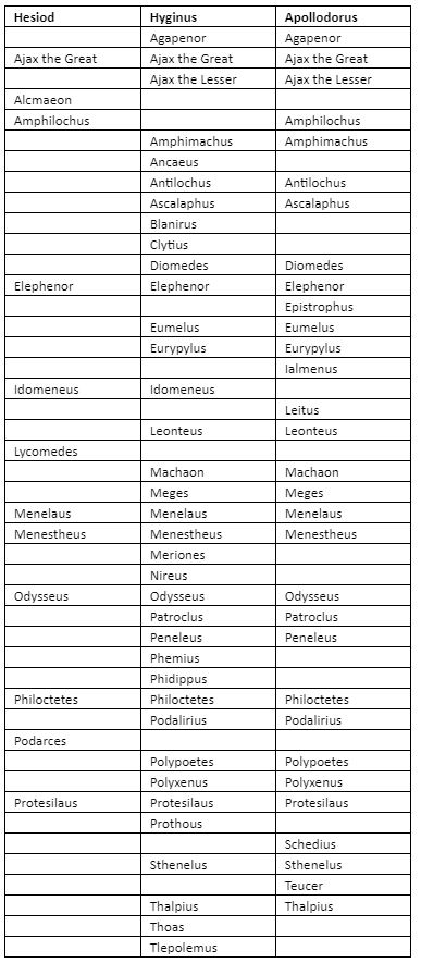 Hesiod, Catalogs of Women and Eoiae, fr. 196–204; Hyginus, Fables, 81; Pseudo-Apollodorus, Bibliotheca II, 10.8 * Cingano, A Catalog within a Catalog, 124; Clader, Helen, 10