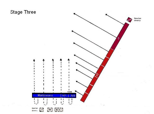 Agis, keeping his troops in hand, now wheeled his line hard to the left, cutting down fleeing Argives as they did. A lifetime of military drill and practice now showed its worth; as with machine-like precision the Spartan center and right turned 90 degrees to face the hitherto victorious Argive right wing.