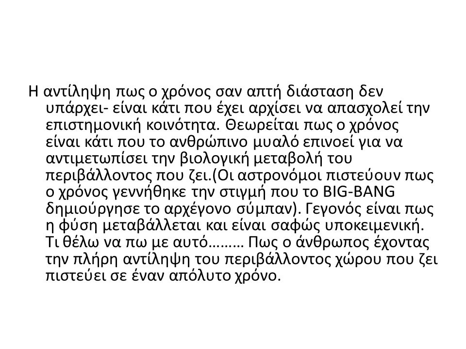 Δηλαδή, είμαστε σίγουροι, πως όταν ήσουν παιδί ένοιωθες τις μέρες ατελείωτες ενώ καθώς μεγάλωνες, ο χρόνος σου μοιάζει όλο και λιγότερος… δηλαδή, σου φαίνεται σαν να επιταχύνει ο χρόνος καθώς μεγαλώνεις… με άλλα λόγια, η αντίληψη σου συνεχώς μεταβάλλεται.