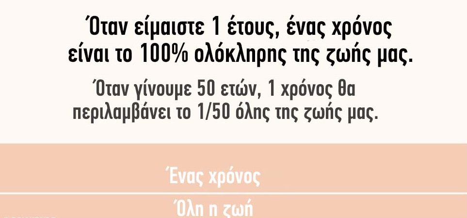 Σε ηλικία 20 ετών ένα έτος ισούται με το 5% της ζωής μας.