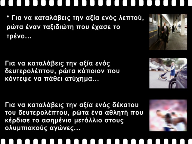 Ενώ πολλοί άνθρωποι θεωρούν ότι τα χρήματα, ή και η κοινωνική θέση, είναι αυτά που καθορίζουν την αξία ενός ανθρώπου κάνουν το τραγικό λάθος να τους διαφεύγει πως τα σημαντικότερα πράγματα σε αυτή τη ζωή είναι άυλης μορφής και μη μετρήσιμα.