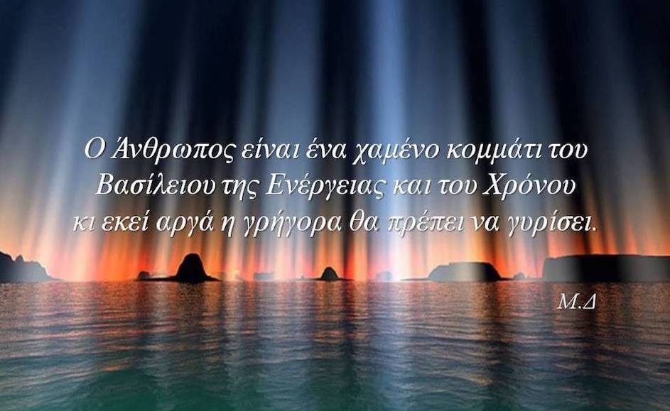 "Δεν υπάρχει χρόνος που να μην υπήρξε: Το τέλος και η αρχή είναι όνειρα." - Αναξίμανδρος