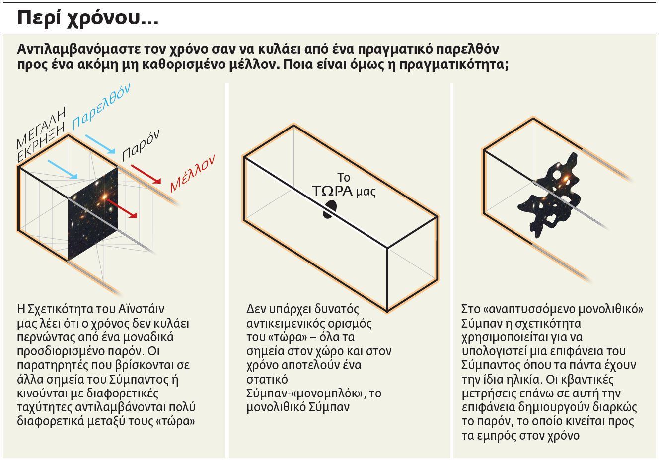 Φαντάσου το αλλιώς: σαν να στέκεις μπροστά σε πολλές οθόνες οι οποίες προβάλλουν ταυτόχρονα το παρελθόν, το παρόν και το μέλλον… και εσύ τα βλέπεις όλα ταυτόχρονα.
