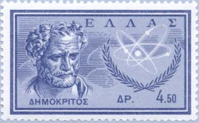 μτφρ: τα άτομα και το κενό είναι η αρχή των πάντων και τα υπόλοιπα είναι κατασκευάσματα του νου (από το Διογένη Λαέρτιο)