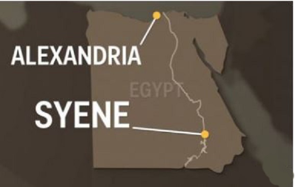 Από την πληροφορία αυτή ο Ερατοσθένης συμπέρανε ότι η Συήνη βρίσκεται πάνω στον τροπικό του Καρκίνου, δηλαδή στον παράλληλο κύκλο με γεωγραφικό πλάτος 23,5 μοίρες. Το χαρακτηριστικό των τόπων που βρίσκονται στον τροπικό του Καρκίνου είναι ότι το μεσημέρι της 21ης Ιουνίου ο Ηλιος βρίσκεται στο ζενίθ, δηλαδή ακριβώς κατακόρυφα προς τα πάνω. Ετσι οι ακτίνες του διαδίδονται κατά μήκος των κατακόρυφων τοιχωμάτων των πηγαδιών, ανακλώνται στην επιφάνεια του νερού και επιστρέφουν προς την επιφάνεια, κάνοντας ορατό το είδωλό του σε έναν παρατηρητή που κοιτάζει από το στόμιο του πηγαδιού.