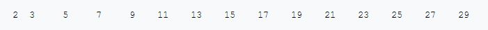 Αρχικά δημιουργούμε μια λίστα από τους ακέραιους από το 2 έως το 30: