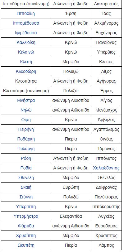 Όταν η κόρη του Δαναού Αμυμώνη ενώθηκε με το θεό της θάλασσας ερωτικά, ανάβλυσαν στη στιγμή οι πλούσιες πηγές της Λέρνας. Οι περισσότερες Δαναΐδες, που με τα ονόματά τους [Ακταίη, Γλαύκη, Ρόδη, Ερατώ, Ηλέκτρα, Αγαύη, Ιφιμέδουσα, Αυτονόη, Στύγνη, Ιπποδάμεια, Ιππομέδουσα, Ιπποδίκη, Ιπποθόη, Ιππαρέτη, Ευίππη, Γλαυκίππη, Χρυσίππη, Διωξίππη, Υπερίππη] θυμίζουν Νηρηίδες – Ωκεανίδες, είναι Νύμφες των πηγών.