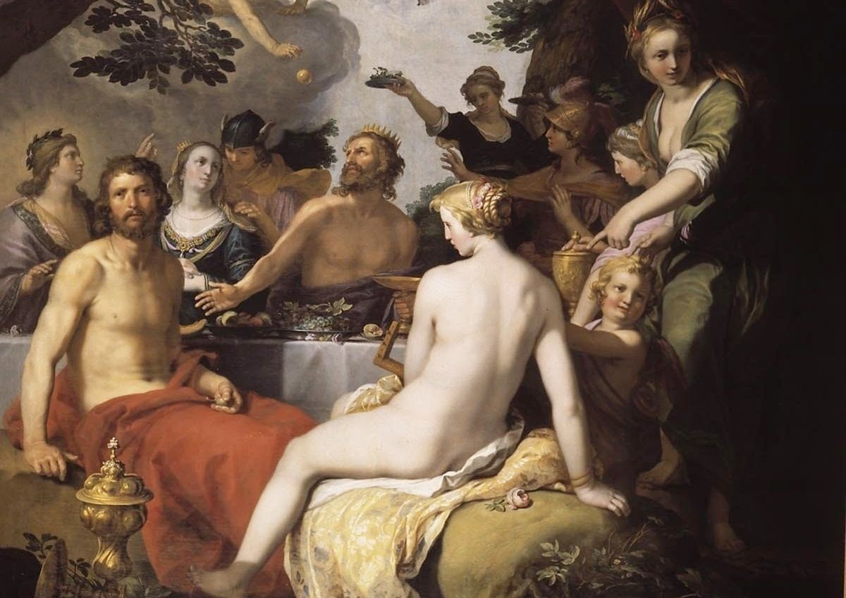 Ως ένας από τους μνηστήρες της Ελένης τη διεκδίκησε και την κέρδισε ως ο πλουσιότερος αλλά και ως αδελφός του Αγαμέμνονα, άνδρα της μεγαλύτερης αδελφής της Ελένης, της Κλυταιμνήστρας. Γι' αυτούς τους λόγους ήταν ο εκλεκτός του Τυνδάρεου, πατέρα της Ελένης, ο οποίος δέσμευσε τους μνηστήρες με κοινό όρκο να σεβαστούν την όποια απόφαση και επιπλέον να συνδράμουν στον σύζυγο της Ελένης, όποιος κι αν ήταν, σε περίπτωση που η Ελένη γινόταν θύμα αρπαγής. (Εικ. 214, 215)