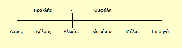 Ομφάλη και Ηρακλής μπλέχτηκαν σε μια ιστορία έρωτα που δεν έμεινε άγονη· γεννήθηκε ένας γιος, ο Λάμος, ή και ο Αχέλης που πρέπει να είναι ο Αγέλαος, γενάρχης των Μερμανδών, πρόγονος δηλαδή του Κροίσου και των Λυδών βασιλέων. Ως γιος τους μνημονεύεται και ο Αλκαίος (Σούδα) που κατά τον Ηρόδοτο είναι μεν Ηρακλείδης και γενάρχης των βασιλέων του τόπου, μητέρα του όμως είναι μια δούλη του Ιάρδανου (1.7)· το ίδιο και ένας ακόμη γιος, ο Κλεόδαιος.