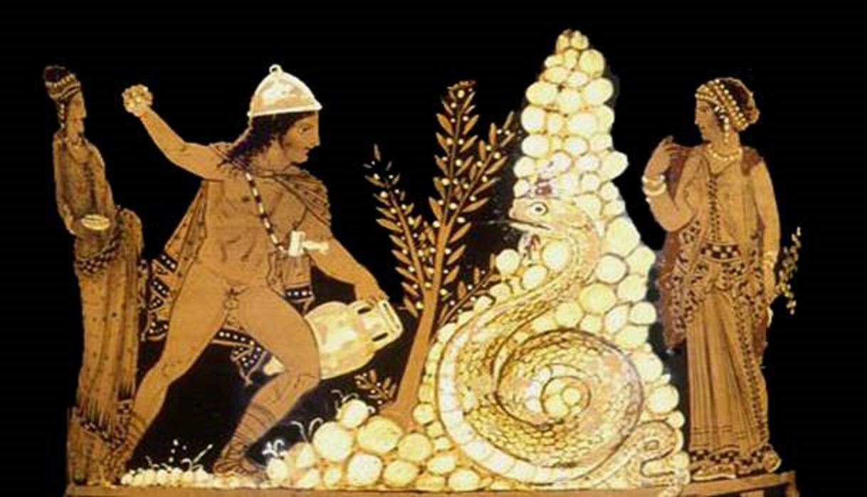 «και ο γιός του Αγήνορα Κάδμος, έσπειρε τα δόντια στην Αονία πεδιάδα και δημιούργησε τους ανθρώπους που γεννήθηκαν από την γη …» (Απολλώνιος Ρόδιος – Αργοναυτικά, 3.1185).