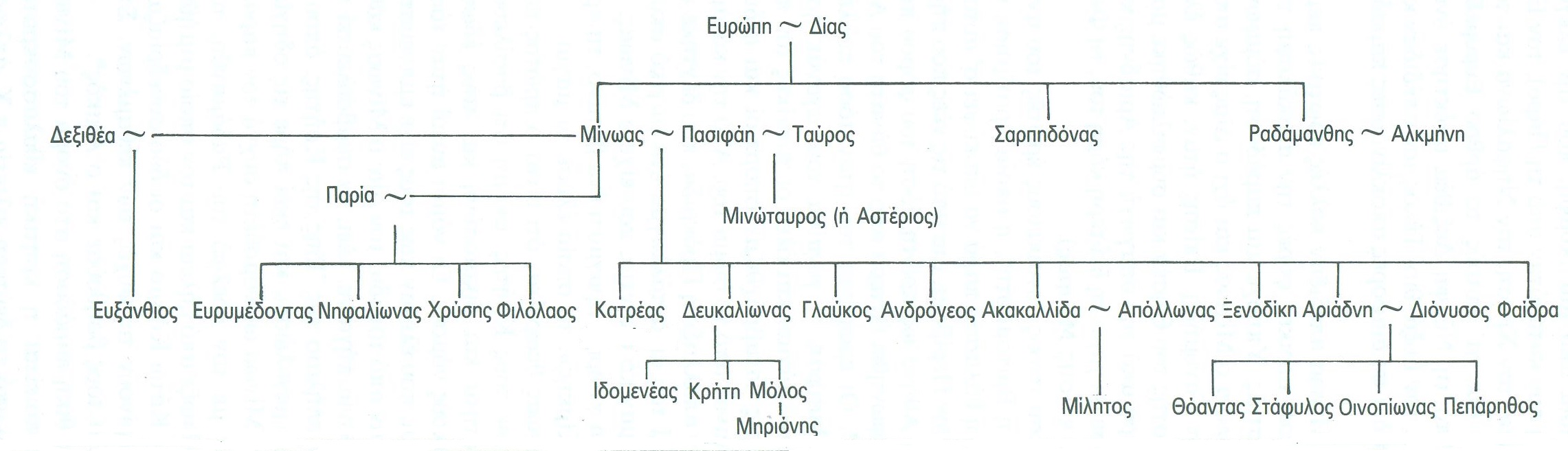 Η Πασιφάη είναι κόρη του Ήλιου και της Περσηίδας, αδελφή του Πέρη και του Αιήτη, του βασιλιά της Κολχίδας, αδελφή της μάγισσας Κίρκη, σύζυγος του Μίνωα.
