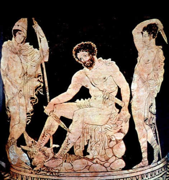 Φίδι δαγκώνει τον καλύτερο τοξοβόλο των Ελλήνων τον Φιλοκτήτη, στην εκστρατεία του Τρωικού πολέμου. Οι Έλληνες τον αφήνουν στην Λήμνο ώστε να τον ιάσουν οι ιερείς του Ηφαίστου με την Λήμνια Γη.
