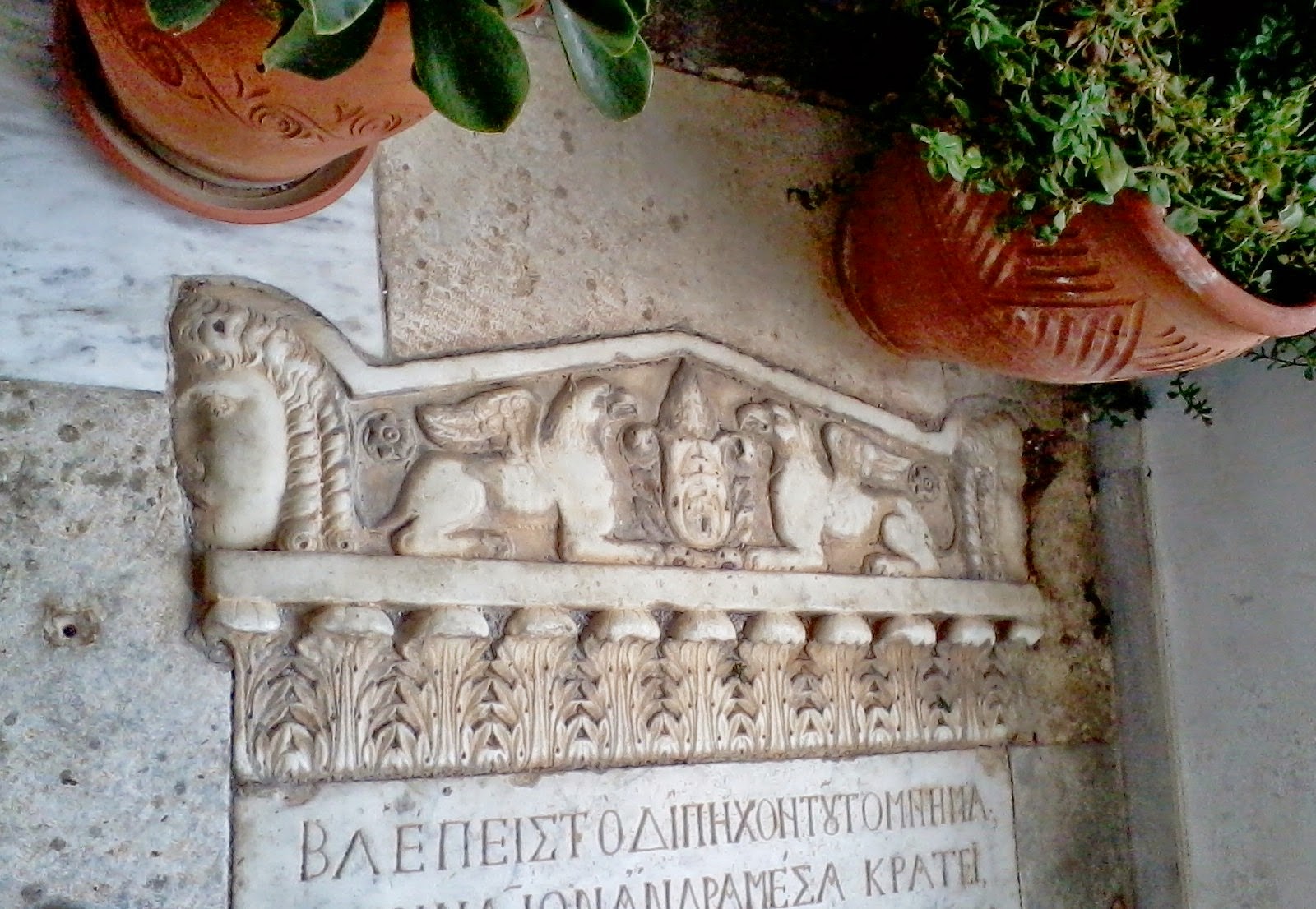 Γρύπες συναντούμε επίσης και στην νεότερη Ελληνικήπαράδοση. Στην φωτογραφία που ακολουθεί βλέπουμε αναθεματική πλάκα από τον Πόρο και πιο συγκεκριμένα από τον προαύλιο χώρο του Μοναστηρίου «Ζωοδόχου Πηγής» όπου βρίσκεται ο τάφος του Υδραίου Ναυάρχου Τομπάζη. Στην αναθηματική πλάκα υπάρχει ανάγλυφη επίστεψη σε μορφή αετώματος, που στο κέντρο της υπάρχει ένας θυρεός, ενώ ένθεν και ένθεν αυτού, υπάρχουν αντικριστοί δύο «Γρύπες». Παρατηρήστε πως στις δύο απολήξεις του αετώματος υπάρχουν δύο κεφάλια που μοιάζουν με κεφάλια από ΚΑΡΥΑΤΙΔΕΣ με κόμμωση και πλεξούδες ...