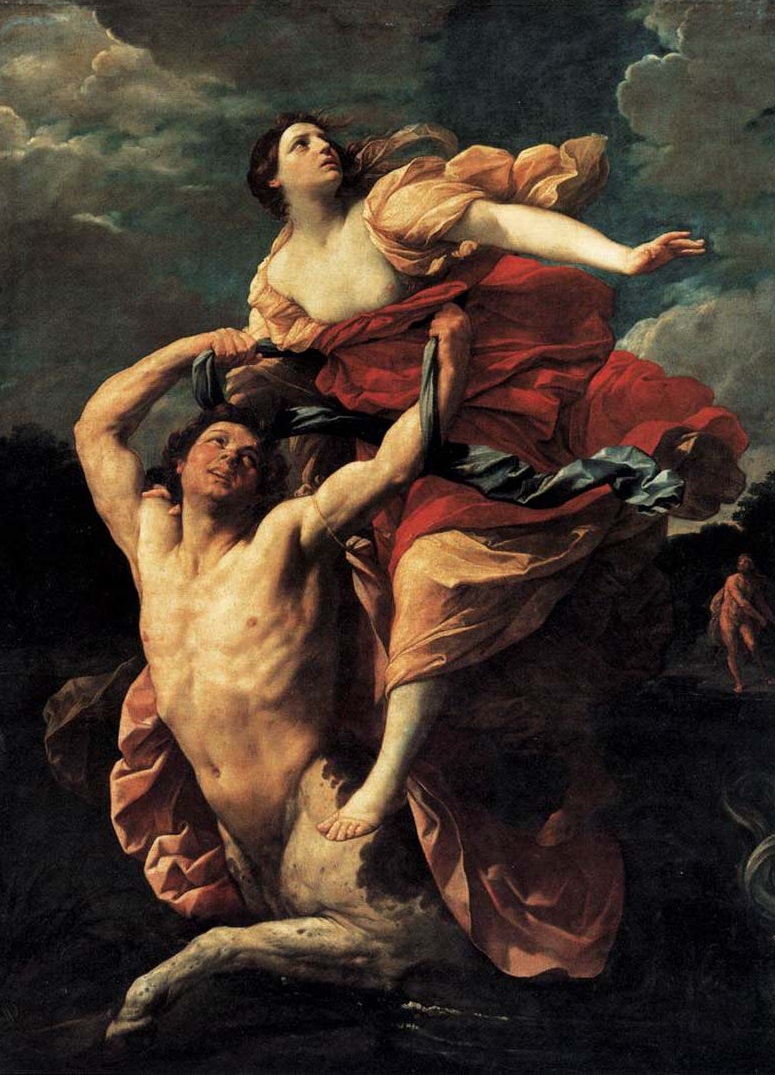 Σύμφωνα με την αφήγηση του Οβίδιου (Μετ. 9.89-158), εκείνη την εποχή ο ποταμός ήταν φουσκωμένος από τις βροχές, ήταν αδιάβατος και με πολλές δίνες. Η νύφη στάθηκε τρομαγμένη, μπροστά στη θέα τόσο του φουσκωμένου ποταμού όσο και του Κένταυρου. Πράγματι, μόλις μπήκαν στο νερό, ο Κένταυρος προσπάθησε να τη βιάσει, αλλά ο Ηρακλής, που αντιλήφθηκε το γεγονός από τις φωνές τις γυναίκας του, κατάφερε να διαπεράσει το στέρνο του Κένταυρου με ένα από τα δηλητηριώδη βέλη του, που είχε βουτήξει στο αίμα της Λερναίας Ύδρας, κτυπώντας τον από την άλλη όχθη του ποταμού, όπου ο ήρωας είχε φτάσει, ή, κατά άλλους, την ώρα που έβγαινε από τον ποταμό.