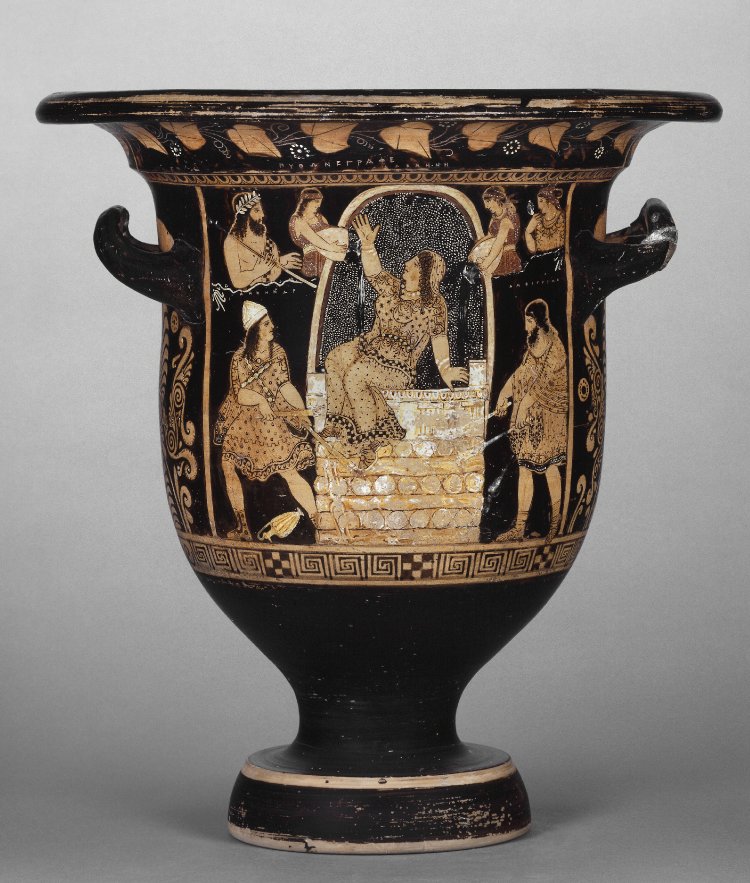 Επομένως, δεν αποκλείεται οι απεικονίσεις δύο μόνο Υάδων, όσες ήταν αρχικά, που αδειάζουν δύο κρατήρες με νερό, για να σβήσουν τη φωτιά που έβαλε ο Αμφιτρύωνας ή ο Αντήνορας για να κάψει την Αλκμήνη, πέρα από το να αφηγούνται εικαστικά τον σχετικό μύθο, μπορεί να παραπέμπουν και στο τελετουργικό της επίκλησης προς τον θεό των καιρικών φαινομένων Δία να στείλει βροχή και να γονιμοποιήσει την καμένη από το κρύο ή τη ζέστη γη, που εδώ προσωποποιείται στη μορφή της Αλκμήνης.