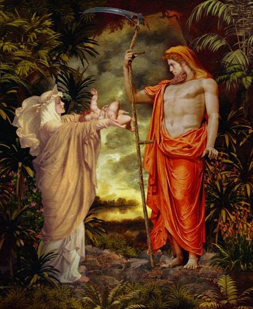Επί της βασιλείας του Κρόνου, η οποία είναι η 2η φάση της δημιουργίας, γεννιόνται πλάσματα που ανήκουν στην ηθική τάξη, σε αντίθεση με τα πλάσματα της βασιλείας του Ουρανού (Κύκλωπας, Τιτάνας), οι οποίοι είναι άγριες φυσικές δυνάμεις. Ανάλογα η Νύχτα γέννησε τον Θάνατο, τον Ύπνο, τις Μοίρες, την Νέμεση, την Έρι, και αυτή τον Πόνο, τις Μάχες, τον Όρκο κ.ο.κ.