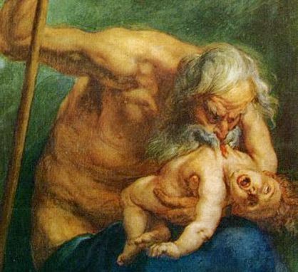 Ο θεός Κρόνος ήταν από τους αρχαιότερους θεούς της αρχαίας Ελληνικής μυθολογίας. Ήταν ο νεώτερος από τους Τιτάνες, τους υιούς του Ουρανού και της Γαίας (κατά άλλο μύθο του Ωκεανού και της Τηθύος) και ο συνεχιστής της δημιουργίας του κόσμου, την οποία σταμάτησε ο πατέρας του. Οπλισμένος από την μητέρα του, που ήταν αγανακτισμένη διότι ο πατέρας του Ουρανός μη θέλοντας να συνεχίσει την δημιουργία, γκρέμιζε τα παιδιά της στα Τάρταρα (τα βύθιζε στα έγκατα της γης) με αδαμάντινη άρπη (δρεπάνι) και έχοντας συμμάχους τους αδελφούς του, κατέβαλλε τον πατέρα του και έκοψε τα μέλη της ανδρικότητας του, εκ των οποίων, αφού τα έριξε στην θάλασσα γεννήθηκε η Αφροδίτη, ενώ από το αίμα που έτρεξε κατά την αποκοπή τους γεννήθηκαν οι Ερυνίες.