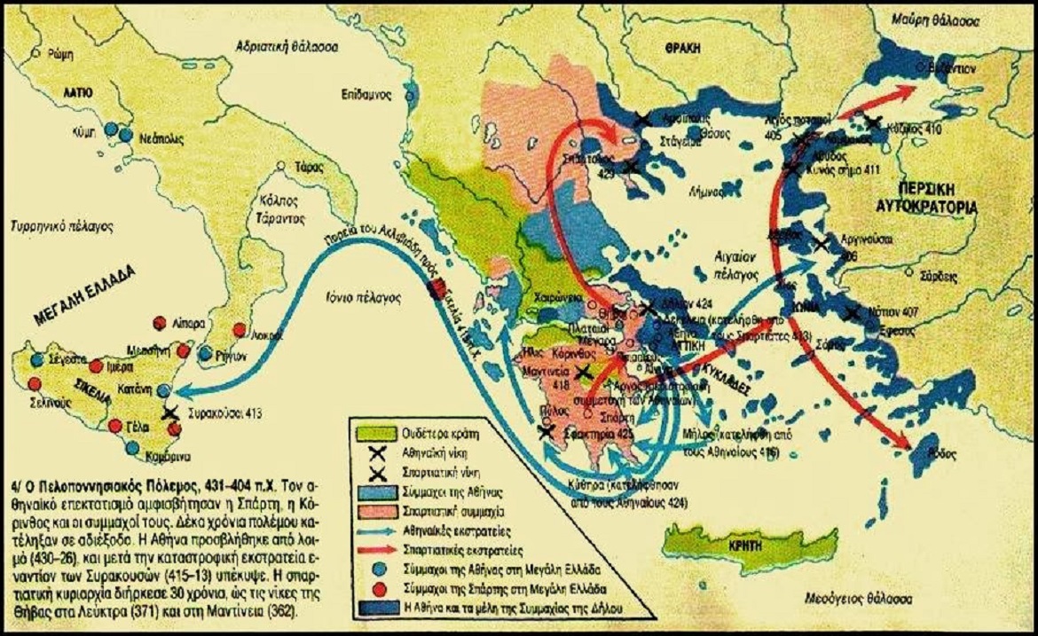 Ο Πελοποννησιακός Πόλεμος (431-404 π.X.) υπήρξε αναμέτρηση έντονη, σύνθετη και πολυεπίπεδη. Ως ιστορικό γεγονός, αποτέλεσε μάλλον κατάληξη και ολοκλήρωση των εξελίξεων μιας προγενέστερης περιόδου, παρά προάγγελο και δημιουργό μιας ριζικά νέας πολιτικής τάξης πραγμάτων στον Ελληνικό χώρο. Σε επίπεδο πολιτικό, υπήρξε η ένοπλη σύγκρουση δύο αντίπαλων συνασπισμών πόλεων-κρατών, στην οποίαοι Αθηναίοι και οι σύμμαχοί τους εκπροσωπούσαν το δημοκρατικό στρατόπεδο, ενώ η Πελοποννησιακή συμμαχία το ολιγαρχικό. Η πραγματικότητα όμως ήταν διαφορετική: τα δημοκρατικά καθεστώτα στις διάφορες πόλεις προήγαγαν τα συμφέροντα των Αθηναίων και της συμμαχίας τους, ενώ οι ολιγαρχίες εξυπηρετούσαν τις επιδιώξεις των Λακεδαιμονίων...