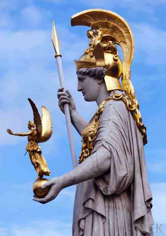 Στο ζώδιο του Κριού, εκείνη που τοποθετείται είναι η Παλλάδα Αθηνά. Η θεά με την πανοπλία και το ακόντιο, ετοιμοπόλεμη και ισχυρή, αυτόνομη κι αυτοκέφαλη, στοιχεία έντονα του ζωδίου του Κριού. Η γέννηση της Αθηνάς είναι περίεργη. Λέγεται, πως ο Δίας, πριν την Ήρα είχε παντρευτεί τη θεά Μήτυ, που ήταν γεμάτη σοφία και γνώση. Όταν εκείνη έμεινε έγκυος στην Αθηνά, την ξεγέλασε κι έριξε μέσα στη κοιλιά του την Αθηνά. Η Αθηνά μεγάλωσε μέσα στον πατέρα της. Όταν ήταν η ώρα να γεννηθεί, ο Δίας είχε πονοκεφάλους και ζήτησε από τον Ήφαιστο να τον βοηθήσει. Εκείνος με ένα τσεκούρι, άνοιξε το κεφάλι του Δία και ξεπήδησε πάνοπλη η Αθηνά.